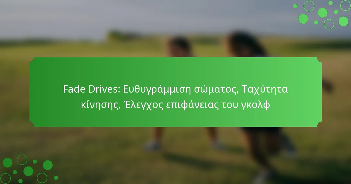 Ένα fade drive χαρακτηρίζεται από την ήπια καμπύλη του από αριστερά προς τα δεξιά, η οποία μπορεί να βοηθήσει τους παίκτες να αποφύγουν εμπόδια ή να τοποθετήσουν την μπάλα ευνοϊκά στο πράσινο. Αυτό το χτύπημα εκτελείται συνήθως με μια ελαφρώς ανοιχτή επιφάνεια κλαμπ κατά την πρόσκρουση, επιτρέποντας την επιθυμητή περιστροφή και τροχιά. Η κατανόηση του fade drive είναι απαραίτητη για τους γκολφέρ που επιθυμούν να βελτιώσουν τις ικανότητές τους στο χτύπημα.